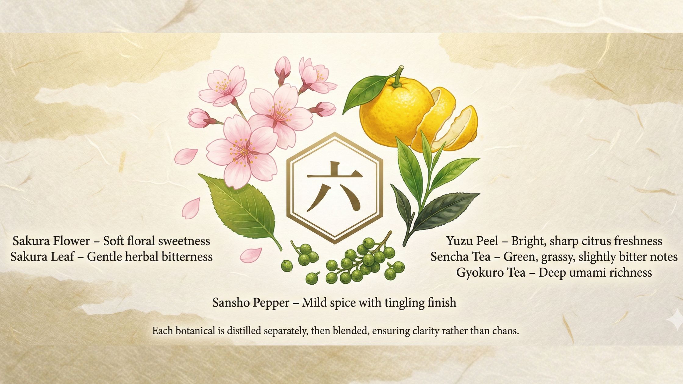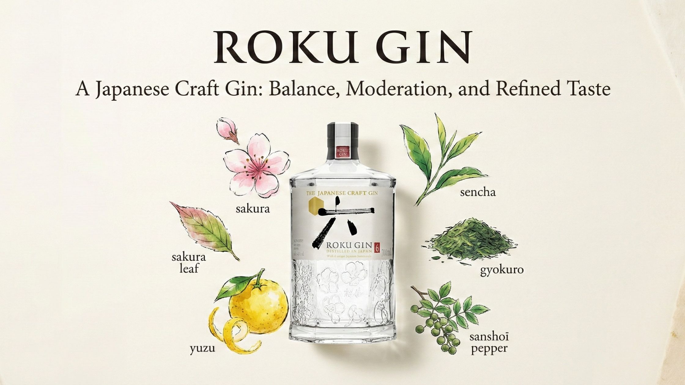 The name Roku means "six" in Japanese, a reference to the six distinct Japanese botanicals that define its character.