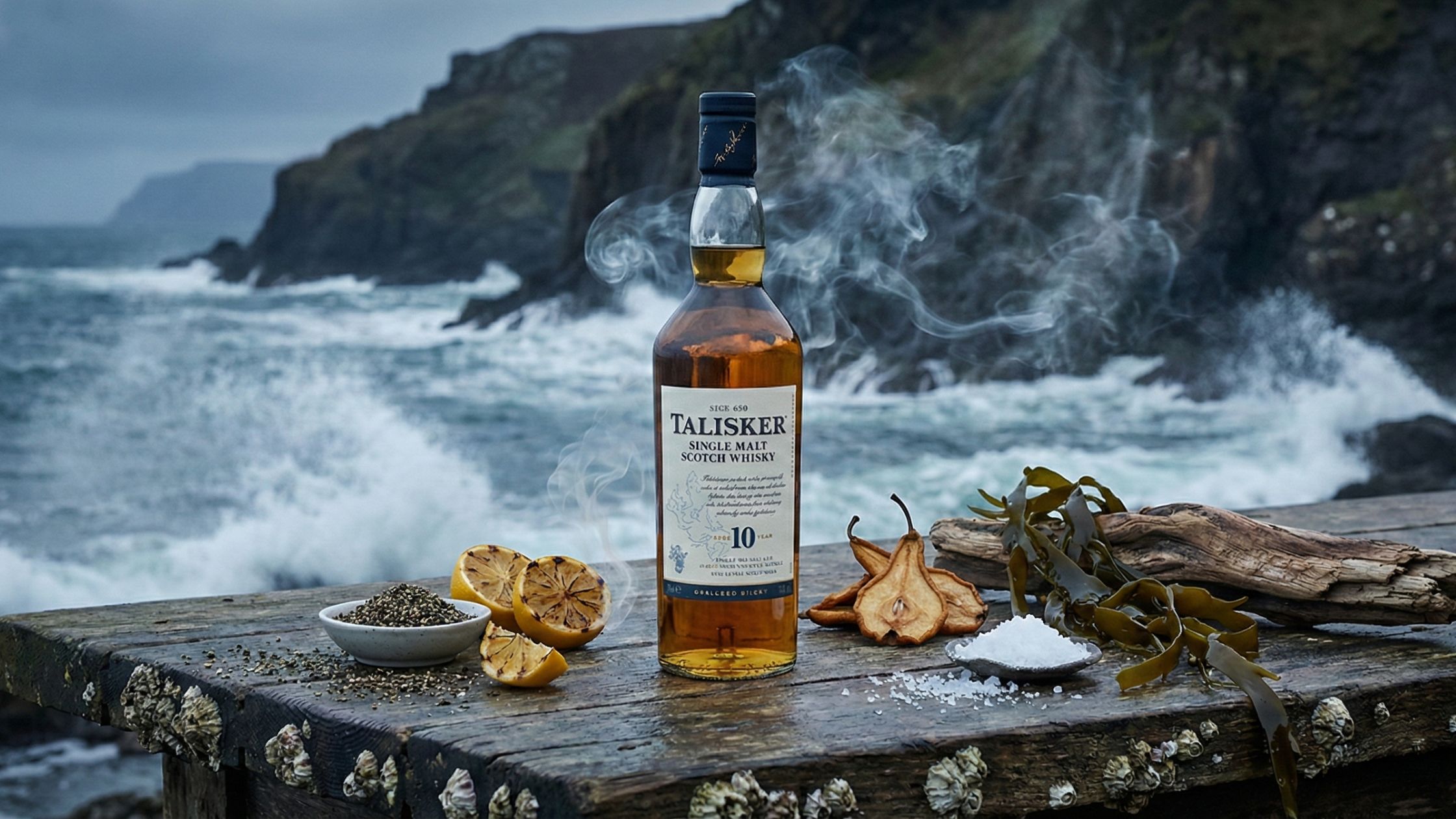 The Talisker 10 Scotch whisky defies traditional expectations because its smooth, sweet characteristics do not match its authentic flavour profile, which reveals its true nature as a rugged coastal drink produced by Ocean Distillers.