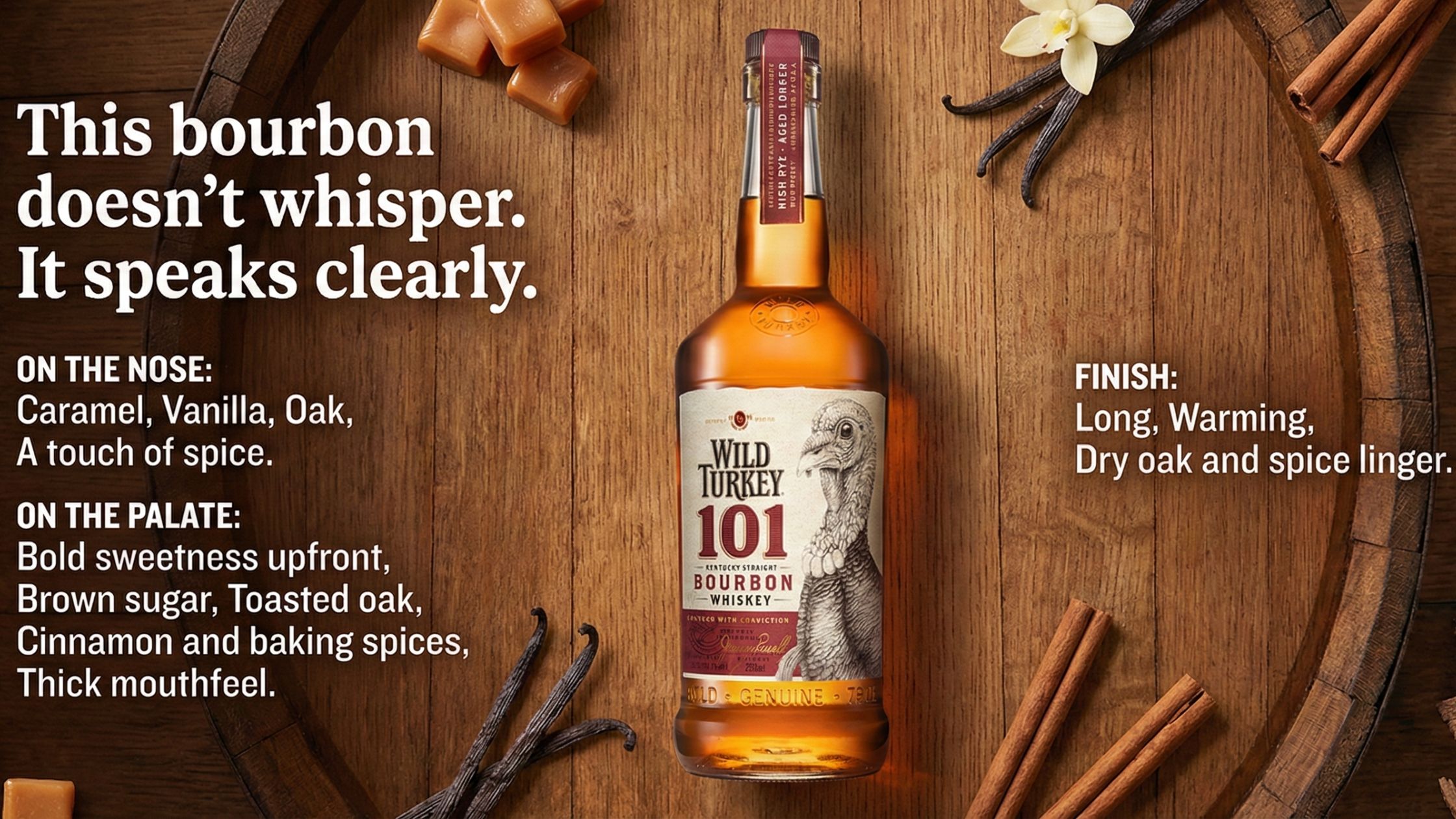 Unlike many bourbons that get watered down for smoothness, Wild Turkey 101 proudly stays bold and has done so for decades.