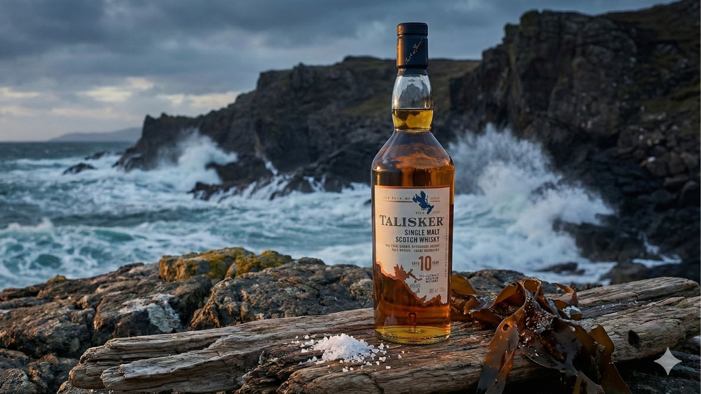 The Talisker 10 Scotch whisky defies traditional expectations because its smooth, sweet characteristics do not match its authentic flavour profile, which reveals its true nature as a rugged coastal drink produced by Ocean Distillers.