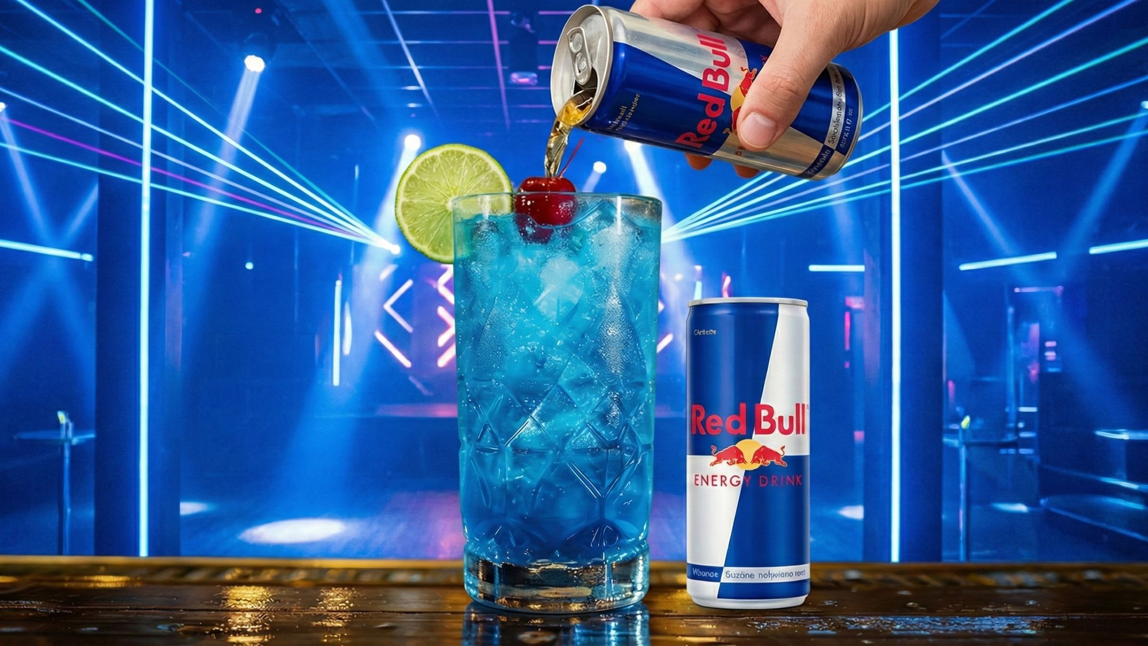 Squeeze in the fresh lemon juice. This is crucial, it cuts the insane sweetness of the Red Bull.